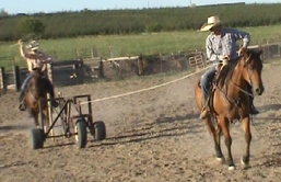 1. Ground Work - Rope dummy sitting on sawhorse, ride horse through obstacle course & rope, rope calves on foot.