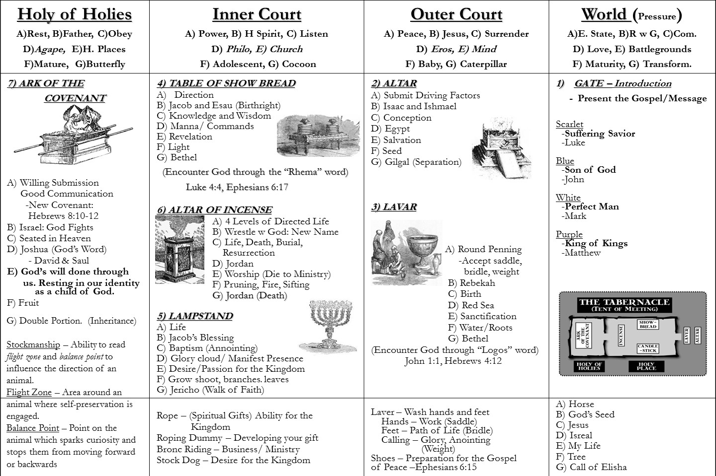 The focus of this page is to share with you how the Lord has spoken to me through horse parables. I spent my early childhood believing in a God, I had a savior and knew where I was going when I died. However, I never really heard His voice until I received a sickness in high school that would totally change my life. After receiving this sickness I not only needed a savior for eternity when I died, but I needed a savior to save my mind, body and emotions that were affected negatively on a daily basis. It was through this desperation and need of a new reality on earth that I learned to press into a new reality in heaven. "The law and the prophets were until John: since that time the kingdom of God is preached, and every man presses into it" (Luke 16:16). Over the last 14 years the Lord has been teaching me the pattern of The Tabernacle using horse parables and breaking down what it means to be "in the Spirit" and "in the flesh" and where sickness comes from and where healing comes from.